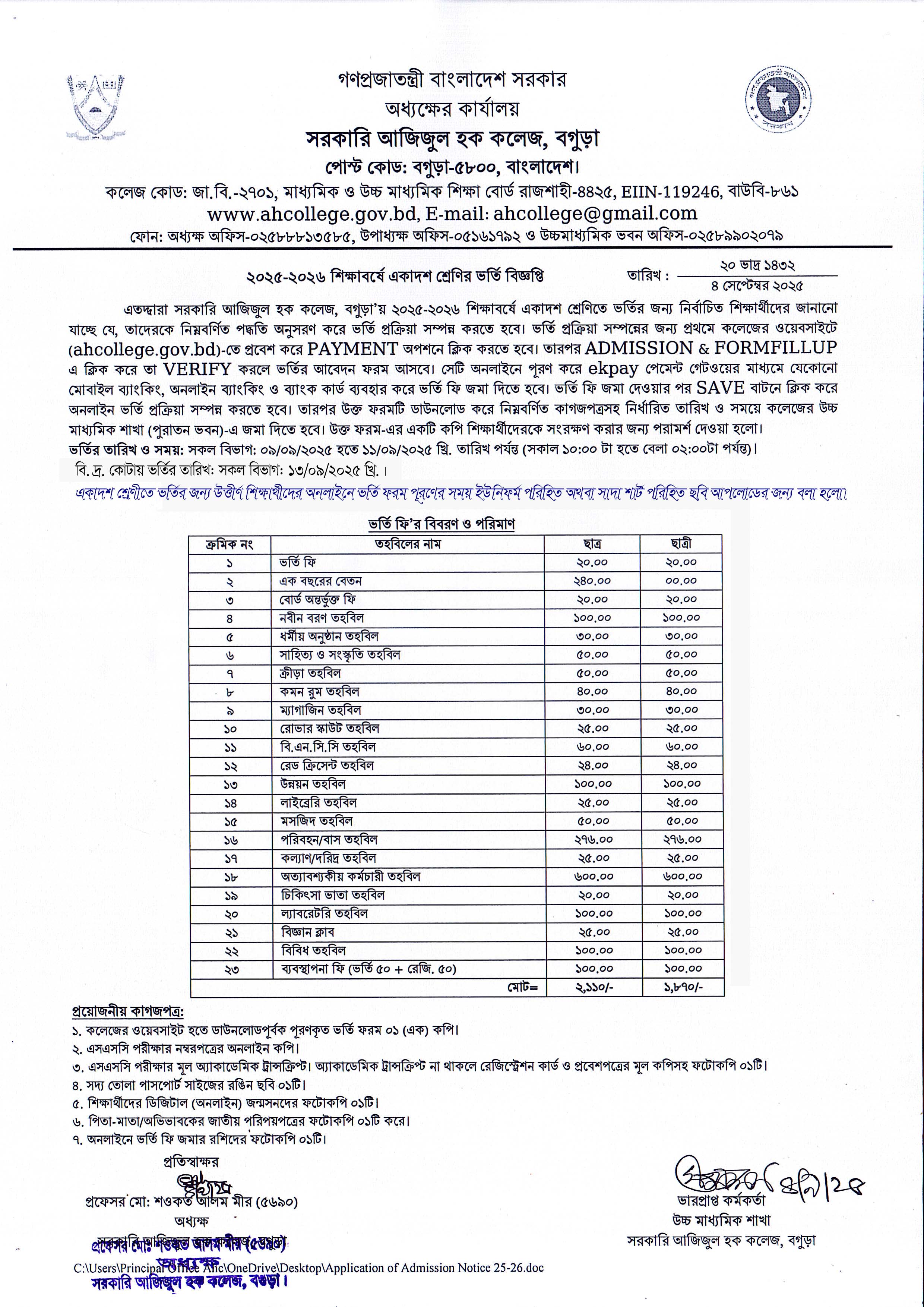 | 55 | 04 Sep, 2025 | ২০২৫-২০২৬ শিক্ষাবর্ষে একাদশ শ্রেণিতে ভর্তি সংক্রান্ত বিজ্ঞপ্তি (সংশোধিত) | View Download |